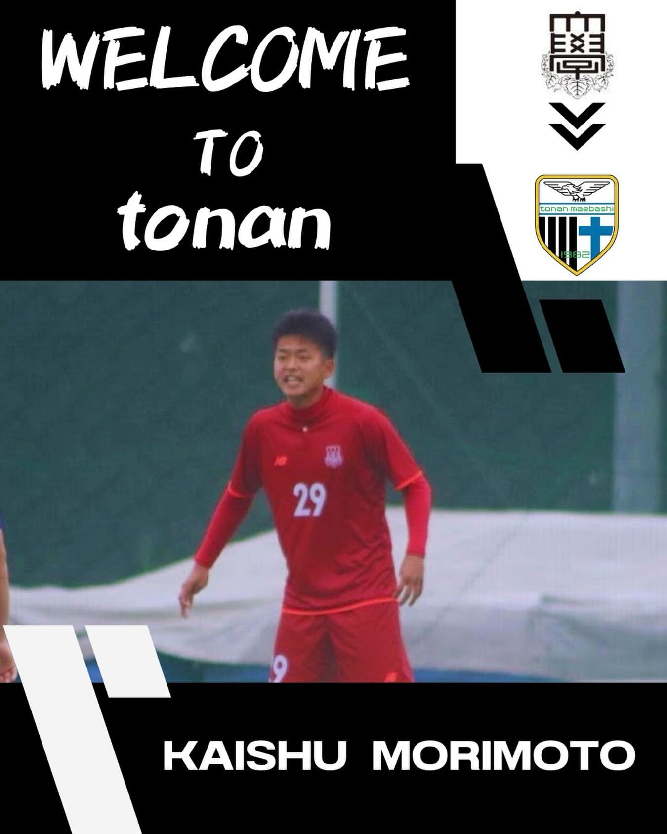 この度、帝京大学より森元 海舟 選手が加入することが決まりましたので、お知らせ致します。 ⚽️選手名 森元 海舟 (もりもと かいしゅう) ⚽️ポジション DF ⚽️生年月日 2003年7月11日 ⚽️身長/体重 172cm / 67kg ⚽️経歴 大宮南高校 → ラスタサッカーファミリー → 帝京大学 → tonan前橋 ⚽️森元 海舟選手 コメント 帝京大学の森元 海舟です。 一つでも多くの試合に絡み一つでも多くの勝利に貢献できるように練習から頑張ります! 宜しくお願いします!